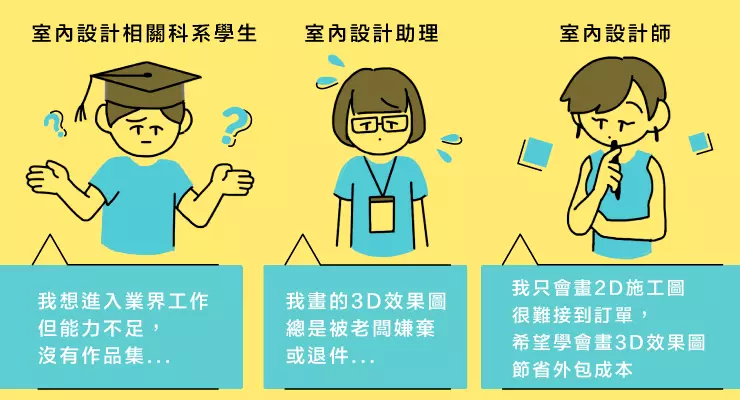 ✔ 室內設計相關科系學生,希望培養能力進入業界工作